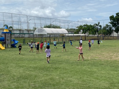 生活科の学習をいかして、学年みんなで水遊びをしました。お家から持ってきた様々な道具(ケチャップの入れ物・ハンガーなど)を活用して、大きなシャボン玉を作ってみたり、水を遠くまでとばしてみたりしました。