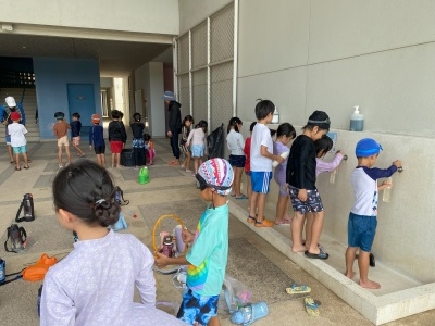 生活科の学習をいかして、学年みんなで水遊びをしました。お家から持ってきた様々な道具(ケチャップの入れ物・ハンガーなど)を活用して、大きなシャボン玉を作ってみたり、水を遠くまでとばしてみたりしました。