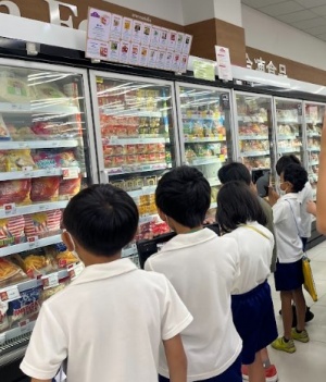 10月24日、校外学習として、マックスバリュー・イオン店に行きました。店長様をはじめ、多くのボランティアスタッフの方々から気持ちよく買い物してもらうための努力をしていると伺いました。普段何気なく利用しているお店では、品物を新鮮な状態で保つための工夫や、商品の並べ方の工夫について学びました。そして、子供たちはスタッフの皆さんのお話を真剣に聞き、積極的に質問するなど学びを深めていました。