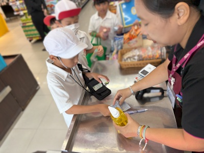 事前学習で、地域の日本人の利用を見越して設立され、今では多くのタイの人々にも親しまれているJパークの役割を学んだ子供たち。当日は、積極的に質問や買い物を楽しみ、交流やマナーの大切さを実感していました。
